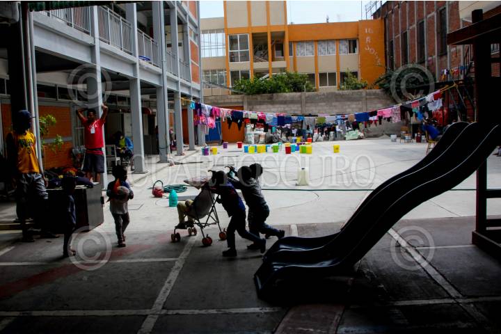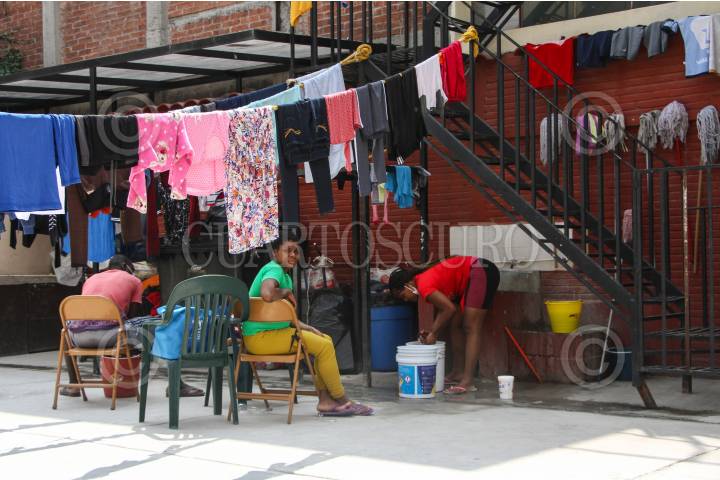 Aspectos del patio del albergue migratorio CAFEMIN.