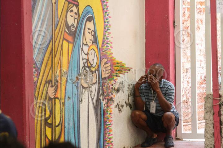 Hombre realiza llamada telefónica dentro del albergue migratorio CAFEMIN.