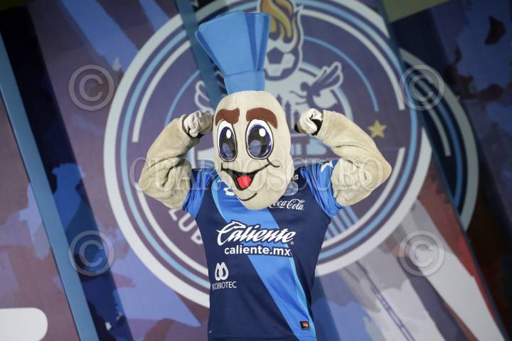 PUEBLA, PUEBLA., 20JULIO2017.- Max Camote; mascota oficial durante la presentación del uniforme oficial del Club Puebla para el torneo Apertura 2017 de la liga MX del fútbol mexicano. FOTO: HILDA RÍOS/ CUARTOSCURO.COM