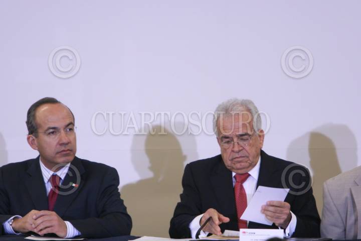 MÉXICO, D.F., 21MARZO2009.- Humberto Treviño Landois, subsecretario de Transportes y Jorge Cárdenas Romo, presidente de la CANACAR, anunciaron que las instituciones llegaron a un acuerdo por lo que se suspende el paro nacional de transportistas realizarían el próximo lunes. FOTO: CUARTOSCURO.COM