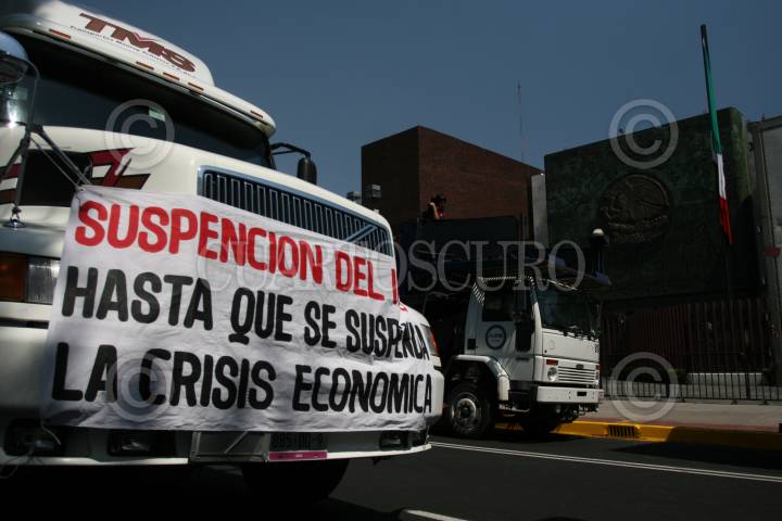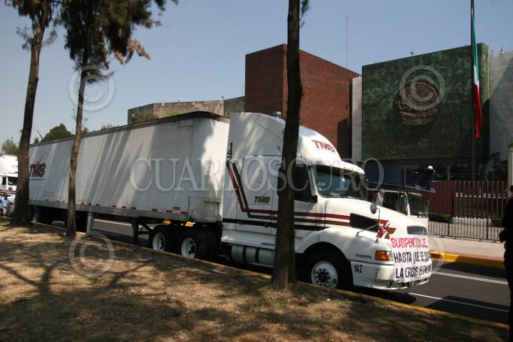 MÉXICO D.F., 24FEBRERO2009.- Transportistas pertenecientes a la CANACAR, protestaron a las afueras de la Cámara de Diputados, exigiendo la reducción del precio del Disel y la reducción del IETU. FOTO: GUILLERMO PEREA/CUARTOSCURO.COM