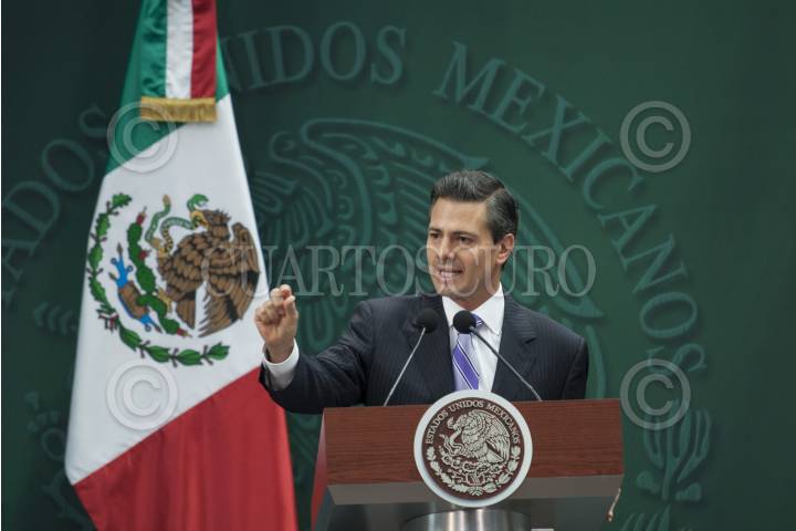 MÉXICO D.F., 29AGOSTO2013.- El presidente Enrique Peña Nieto durante el evento de Toma de Protesta al Consejo Nacional Directivo de la Cámara Nacional del Autotransporte de Carga (CANACAR) que se realizó en el salón Adolfo López Mateos de la Residencia Oficial de Los Pinos. FOTO: RODOLFO ANGULO /CUARTOSCURO.COM