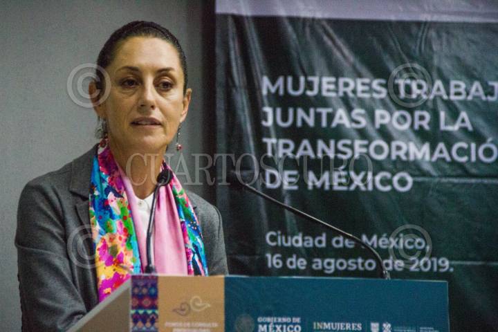 CIUDAD DE MÉXICO, 16AGOSTO2019.-Claudia Sheinbaum, jefa del Gobierno de la Ciudad, junto Nadine Gasman, del Instituto Nacional de las Mujeres, así como Ernestina Godoy, Rosa Isela Rodríguez, Gabriela Rodríguez, entre otras en la inauguración del encuentro "Mujeres trabajando juntas por la Transformación de México". FOTO: VICTORIA VALTIERRA / CUARTOSCURO.COM