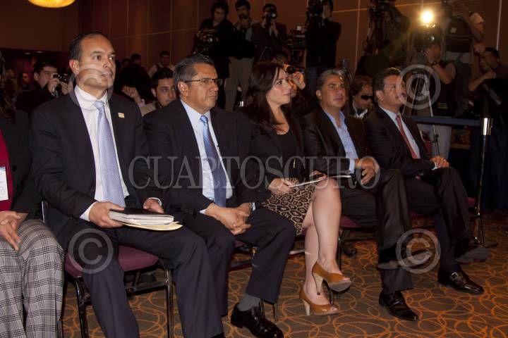 MÉXICO, D.F., 15FEBRERO2012.- Luis Serna, Joel Ortega, Laura Velázquez, Alejandro Díaz-Durán, y Carlos Navarrete, miembros del equipo de trabajo de Miguel Ángel Mancera, precandidato a le Jefatura de Gobierno por los partidos PRD, PT y Movimiento Ciudadano. El ex-procurador participó en el foro "Necesidades de la mircro y pequeña empresa" que organizó la Cámara Nacional de Comercio, Servicios y Turismo en pequeño en la Ciudad de México (CANACOPE). FOTO: MOISÉS PABLO/CUARTOSCURO.COM