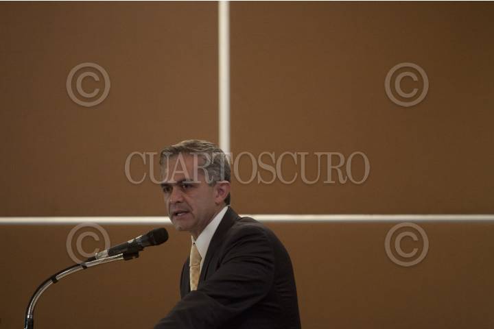 MÉXICO, D.F., 15FEBRERO2012.- Miguel Ángel Mancera, precandidato a le Jefatura de Gobierno por los partidos PRD, PT y Movimiento Ciudadano, participó en el foro "Necesidades de la mircro y pequeña empresa" que organizó la Cámara Nacional de Comercio, Servicios y Turismo en pequeño en la Ciudad de México (CANACOPE). FOTO: MOISÉS PABLO/CUARTOSCURO.COM