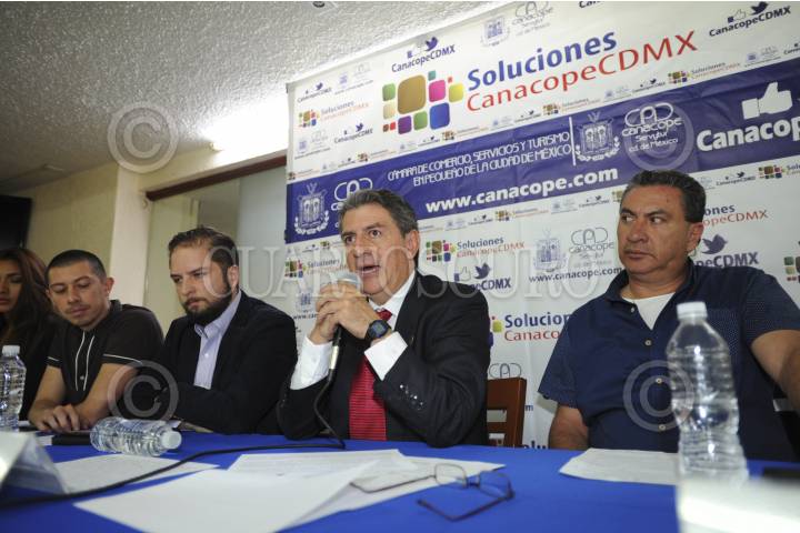 MÉXICO, D.F., 14OCTUBRE2015.- Ofrecieron una conferencia los integrantes de la Canacope, encabezados por su presidente Gerardo López, para hablar sobre las afectaciones económicas que les acarrea el nuevo plantón de campesinos en las inmediaciones del Monumento a la Revolución. FOTO: ARMANDO MONROY /CUARTOSCURO.COM