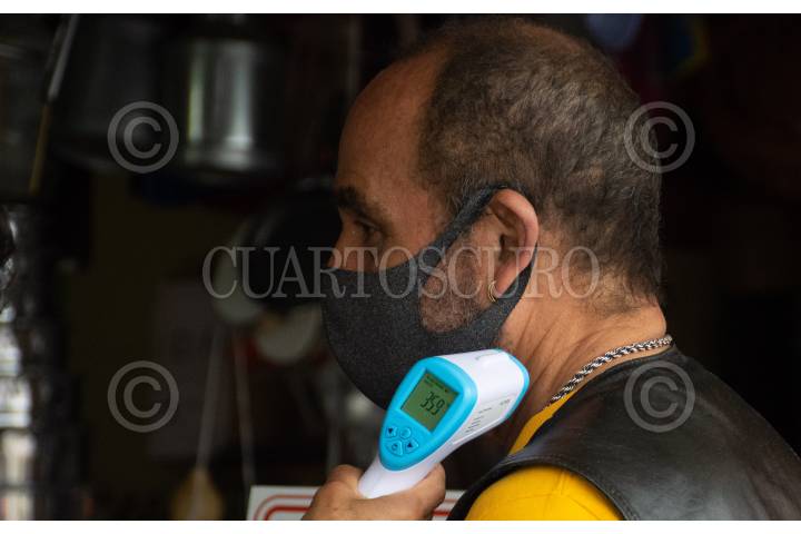 Toma de temperatura a la entrada del Mercado Jamaica.