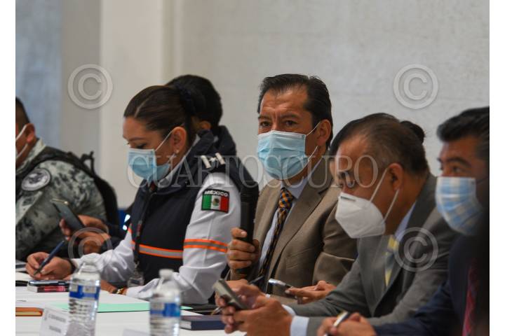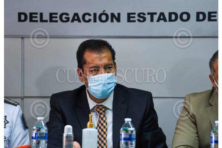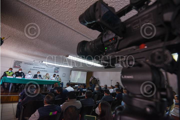 Reunión de Seguridad de CANAPAT encabezada por el delegado Odilón López Nava, en donde se trató el tema de extorsiones a 29 líneas de transporte del Valle de Toluca.