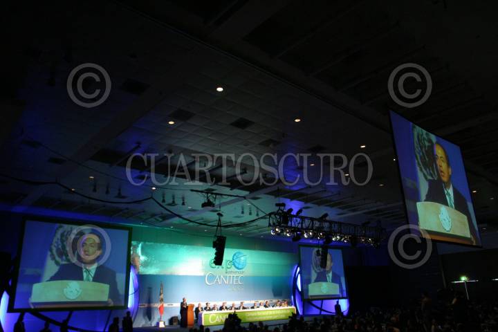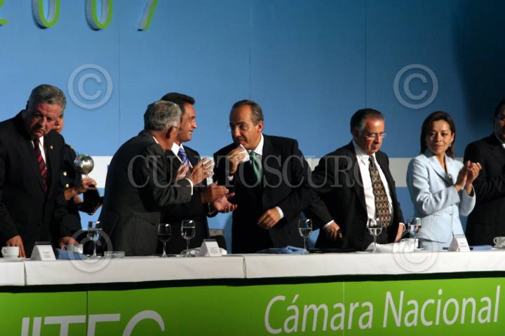 MÉXICO, D.F., 18ABRIL2007.- Felipe Calderón Hinojosa, Presidente de los Estados Unidos Mexicanos, encabezó la comida inaugural de la Expo Convención CANITEC 2007 en el Centro Banamex. FOTO: MOISÉS PABLO/CUARTOSCURO.COM