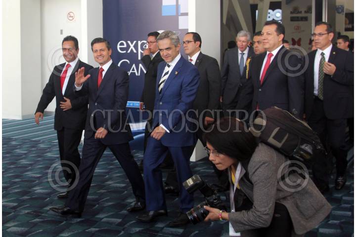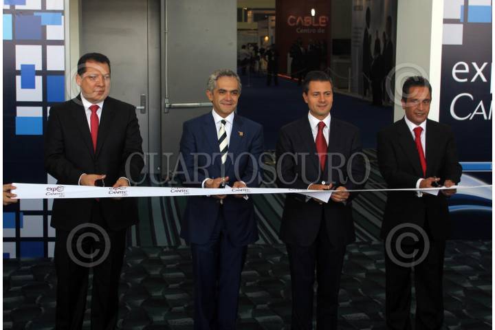 MÉXICO, D.F., 29MAYO2013.- Enrique Peña Nieto, presidente de México, acompañado de Miguel Ángel Mancera, jefe de gobierno del Distrito Federal y Alejandro Puente Córdova presidente de la CANITEC inauguraron en el Centro Banamex la Cámara Nacional de la Industria de Telecomunicaciones por Cable 2013. FOTO: SAÚL LÓPEZ /CUARTOSCURO.COM