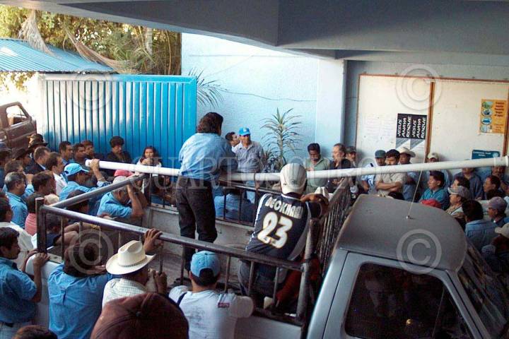 CHILPANCINGO, GUERRERO, 22DICIEMBRE2004.- Trabajadores de la Comisión de Agua Potable y Alcantarillado de Chilpancingo (CAPACH), pararon labores por mas de 5 horas para exigir el pago de su aguinaldo. FOTO: Oscar Alvarado/CUARTOSCURO.COM