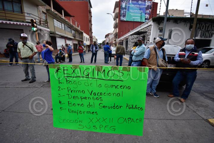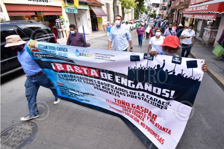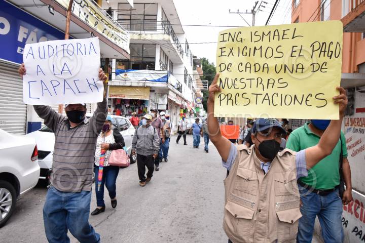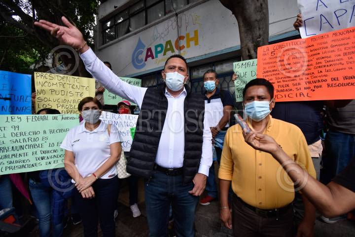 Los trabajadores de la Comisión de Agua Potable y Alcantarillado de Chilpancingo (CAPACH) se movilizaron lidereados por David Martínez Mastcahe, para exigir el pago pago de la segunda quincena de julio y la primera de agosto; además de la prima vacacional.