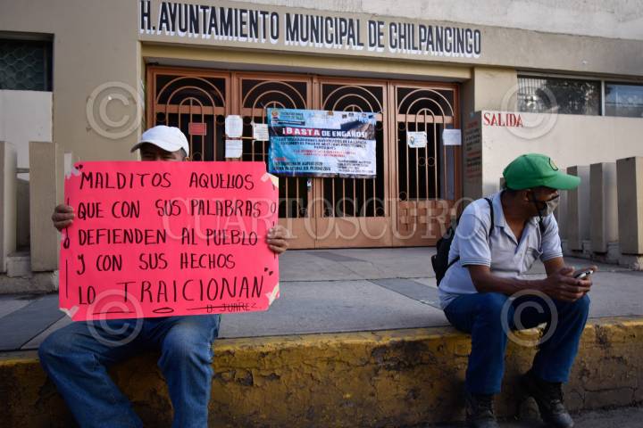 Trabajadores de la Comisión de Agua Potable y Alcantarillado de Chilpancing, se manifestaron para exigir al presidente Antonio Gaspar Beltrán que pague pendientes que tiene con los agremiados.