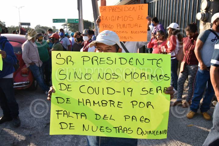 Bloqueo de trabajadores de CAPACH, durante protesta por incumplimiento de autoridades municipales en acuerdos en mesas de trabajo.