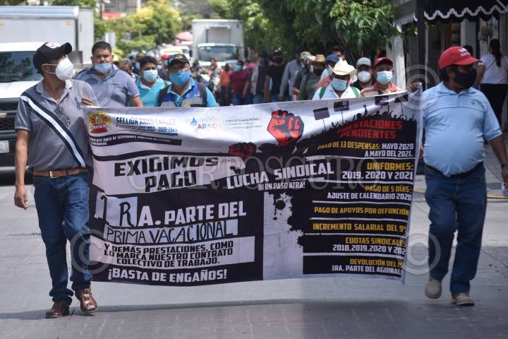 Trabajadores de la Comisión de Agua Potable y Alcantarillado de Chilpancingo se manifestaron pra exigir el pago de diversas prestaciones que les adeuda el ayuntamiento desde el año pasado.