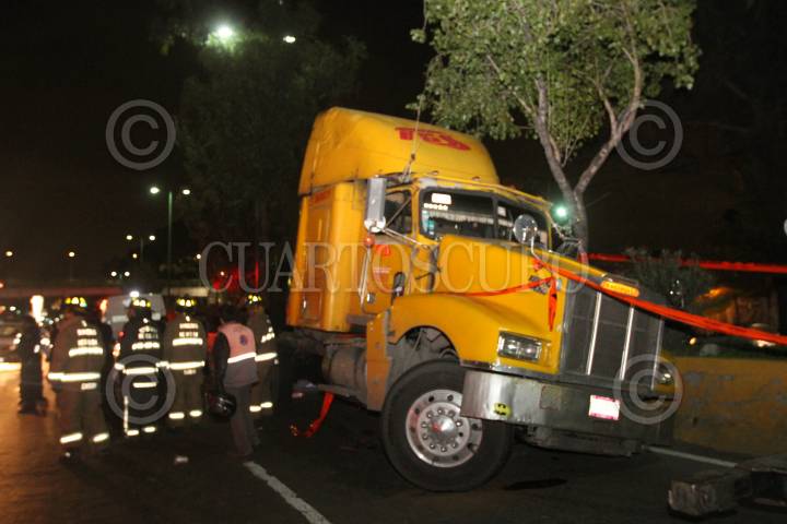 MÉXICO D.F., 07SEPTIEMBRE2014.- El chofer de un tráiler pierde la vida aplastado por su unidad, al impactarse con el muro de contención y salir de la cabina. Los hechos, ocurrieron sobre Ermita Iztapalapa a la altura de la calle 39 en la colonia Santa Cruz Meyehualco en Iztapalapa. FOTO: LUIS CARBAYO /CUARTOSCURO.COM