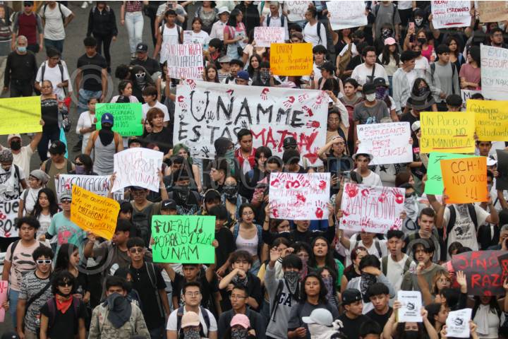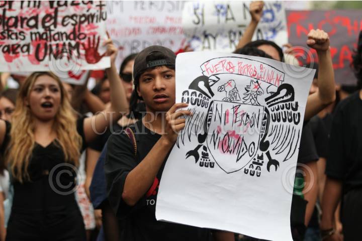CIUDAD DE MÉXICO, 17NOVIEMBRE2023.- Supuestos estudiantes de bachillerato de la Universidad Nacional Autónoma de México se manifestaron frente a Rectoría de Ciudad Universitaria, los inconformes exigen a las autoridades cumplimento a sus demandas que entregaron en un pliego petitorio. FOTO: ROGELIO MORALES /CUARTOSCURO.COM