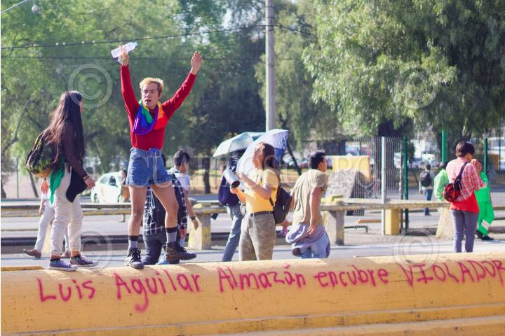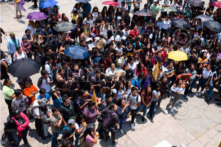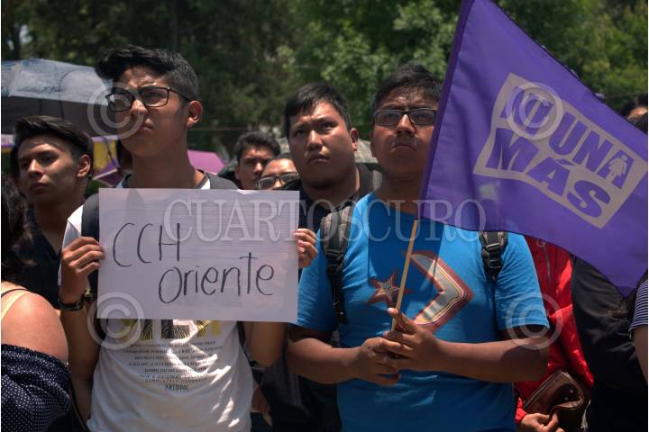 Estudiantes del CCH Oriente marcharon para pedir la destitución del actual director Víctor Efraín Peralta Terraza por la violencia de género que viven los alumos en el platon