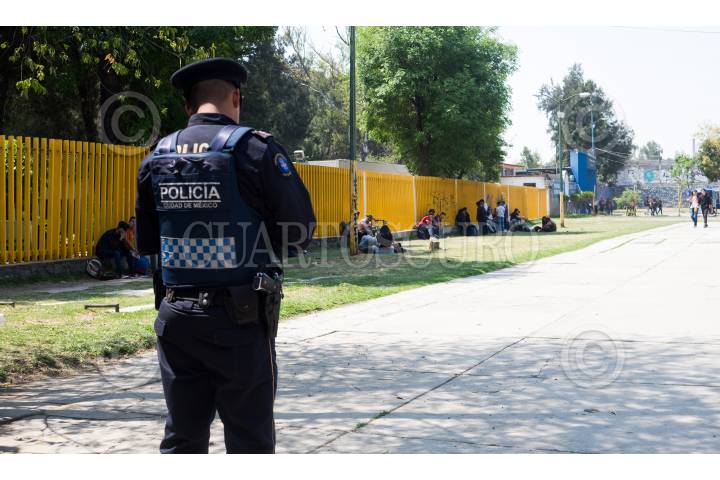 CIUDAD DE MÉXICO, 07MAYO2019.- La vigilancia del Colegio de Ciencias y Humanidades (CCH), plantel Oriente se encuentra escasa, a pesar del programa "Sendero Seguro", impulsado por la jefa de gobierno, Claudia Sheinbaum. Luego del feminicidio de la alumna Aideé Mendoza Jiménez, ocurrido el pasado lunes 29 de abril, en el edificio P de las instalaciones del plantel. FOTO: GRACIELA LÓPEZ /CUARTOSCURO.COM