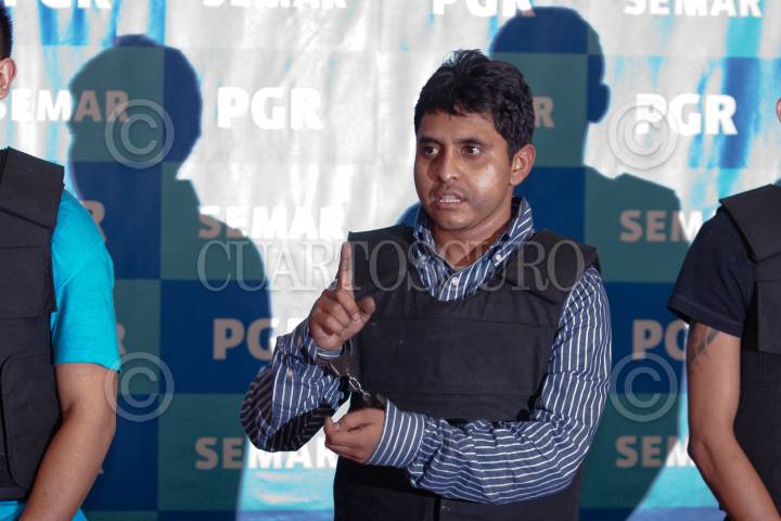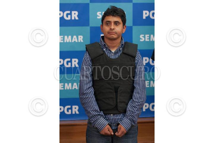 MÉXICO, D.F. 08OCTUBRE2012.- Salvador Martínez Escobedo o Carlos García, alias "La Ardilla", presentado por la Secretaría de Marina Armada de México (SEMAR). Presunto asesino de 72 migrantes. FOTO: JUAN PABLO ZAMORA /CUARTOSCURO.COM