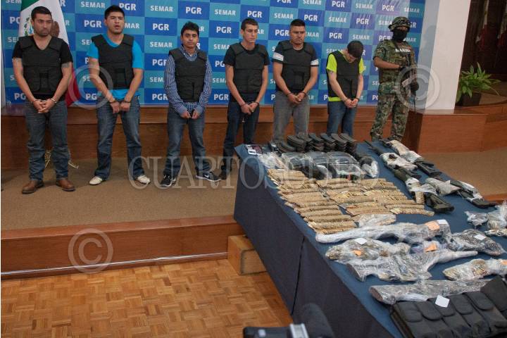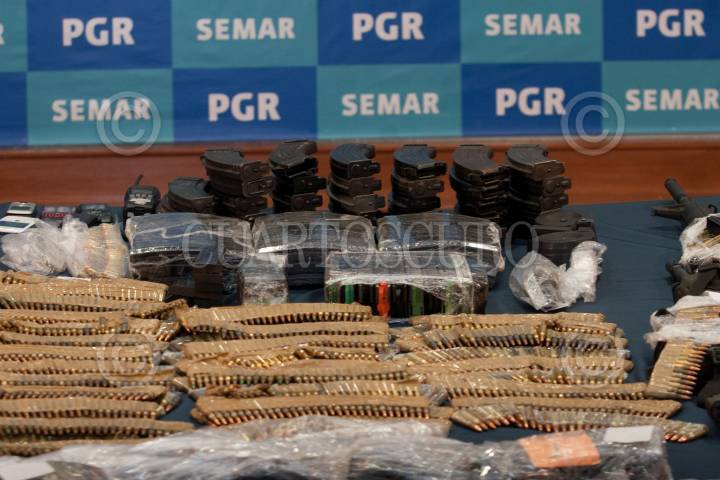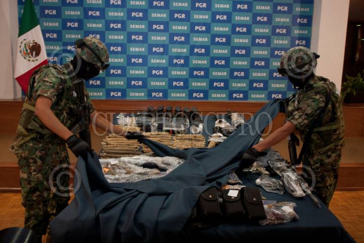 MÉXICO, D.F. 08OCTUBRE2012.- Armas decomisadas a Salvador Martínez Escobedo o Carlos García, alias "La Ardilla", presentado por la Secretaría de Marina Armada de México (SEMAR). FOTO: JUAN PABLO ZAMORA /CUARTOSCURO.COM