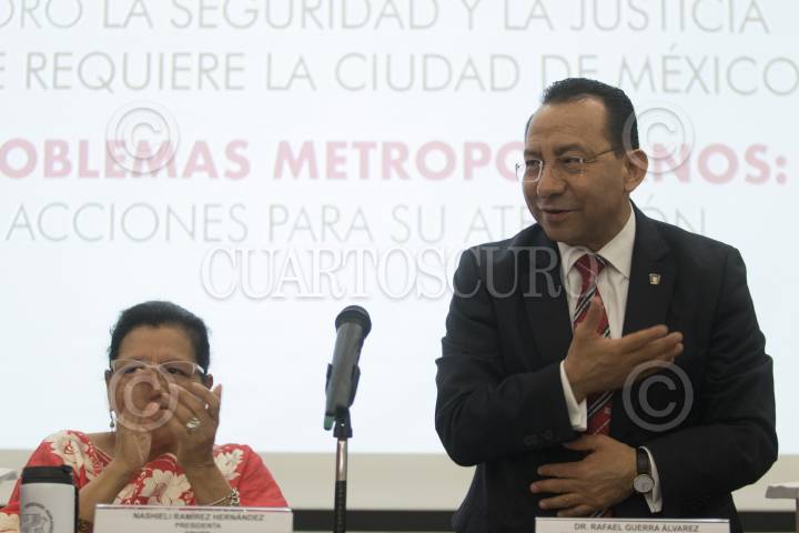 CIUDAD DE MÉXICO, 27MARZO2019.- Nashieli Ramírez Hernández, presidenta de la CDHDF, y Rafael Guerra Álvarez, presidente del Tribunal Superior de Justicia local, durante el foro "La Seguridad y la Justicia que requiere la Ciudad de México". FOTO: ISAAC ESQUIVEL /CUARTOSCURO.COM