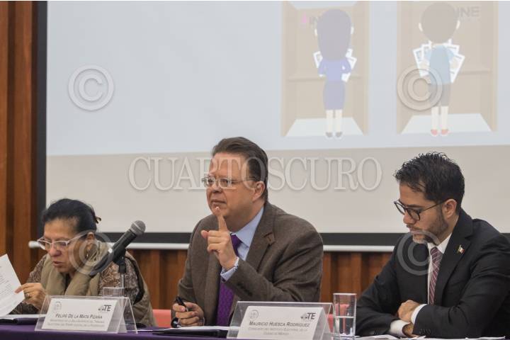 CIUDAD DE MÉXICO, 09AGOSTO2019.- Nashieli Ramírez, presidenta de la Comisión de Derechos Humanos de la Ciudad de México, Felipe de la Mata Pizaña, magistrado del Tribunal Electoral del Poder Judicial de la Federación, y Mauricio Huesca Rodríguez, consejero del Instituto Electoral de la Ciudad de México, durante el foro Participación política en el Sistema Penitenciario, en la CDHDF. FOTO: ISAAC ESQUIVEL /CUARTOSCURO.COM