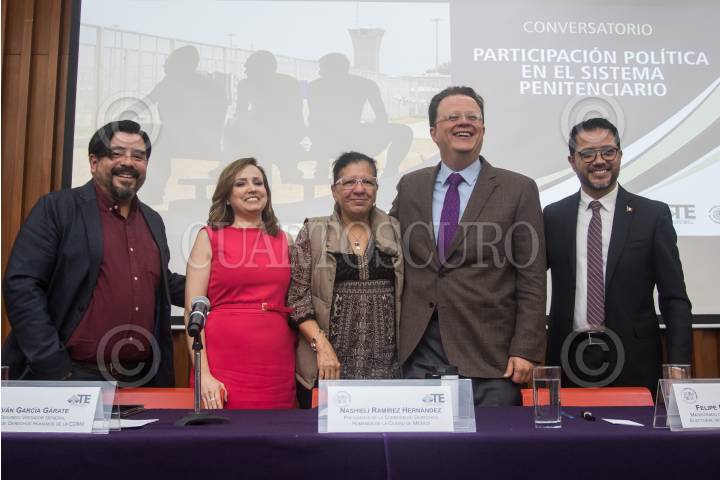 CIUDAD DE MÉXICO, 09AGOSTO2019.- Martha Leticia Mercado Ramírez, magistrada del Tribunal Electoral de la Ciudad de México, Nashieli Ramírez, presidenta de la Comisión de Derechos Humanos de la Ciudad de México, Felipe de la Mata Pizaña, magistrado del Tribunal Electoral del Poder Judicial de la Federación, y Mauricio Huesca Rodríguez, consejero del Instituto Electoral de la Ciudad de México, durante el foro Participación política en el Sistema Penitenciario, en la CDHDF. FOTO: ISAAC ESQUIVEL /CUARTOSCURO.COM