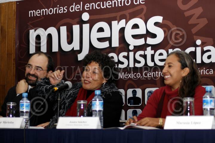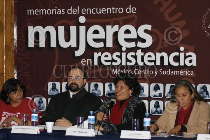 MÉXICO, D.F., 29OCTUBRE2007.- Ma. Antonieta Trinidad del Valle, Emilio Álvarez Icasa, presidente de la Comisión de Derechos Humanos del D.F., Pilar Muriedas y Yéssica Sánchez en la presentación de la publicación de las memorias del encuentro de mujeres en resistencia, que se realizó esta mañana en un salón de la CDHDF. FOTO: URIEL ROLDÁN AGUILAR/CUATOSCURO.COM
