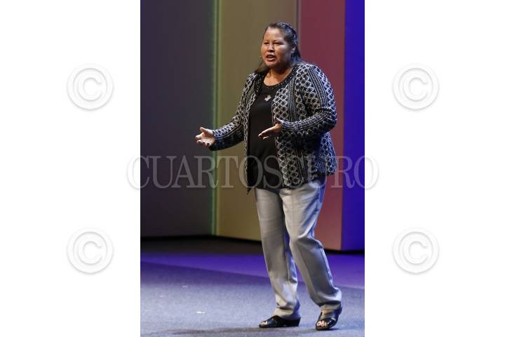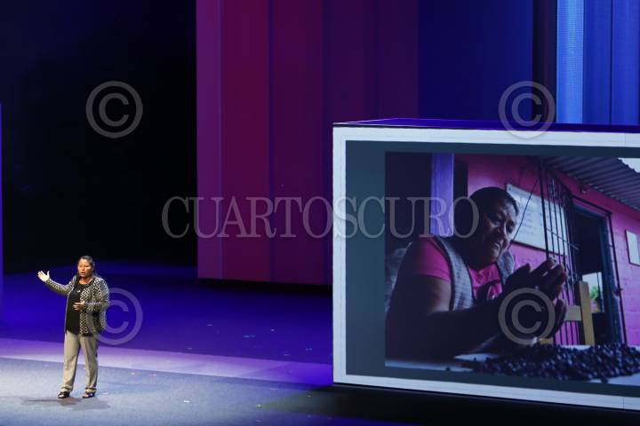 PUEBLA, PUEBLA, 19NOVIEMBRE2016.- Norma Romero, perteneciente al grupo de mujeres que dan alimento a los migrantes que viajan en la bestia en el estado de Veracruz denominado "Las Patronas"; ofreció una ponencia en el segundo día de actividades del Noveno Festival Internacional de Mentes Brillantes “La ciudad de las Ideas”, realizado en el Auditorio Metropolitano de Puebla. FOTO: HILDA RÍOS /CUARTOSCURO.COM
