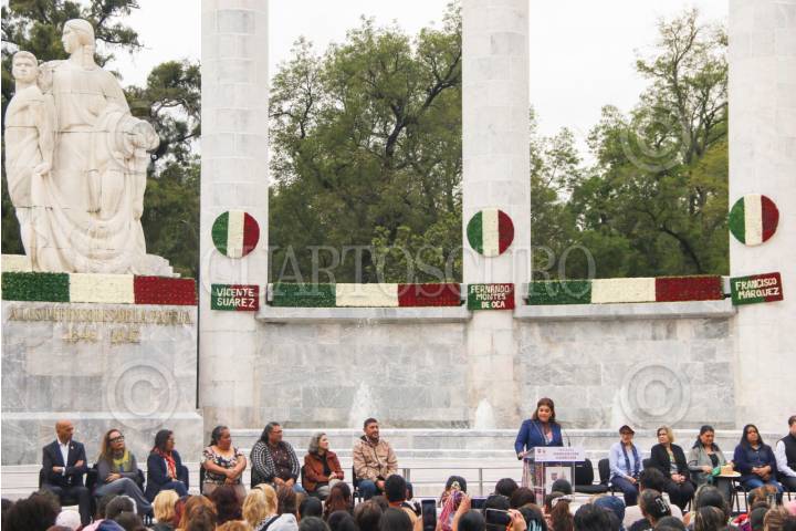 CIUDAD DE MÉXICO. 17SEPTIEMBRE2025.- La jefa del Gobierno de la ciudad, Clara Brugada Molina; al pie del altar a la Patria entrego ayuda económica del programa "Ciudad que cuida a quienes cuidan". FOTO: VICTORIA VALTIERRA/CUARTOSCURO.COM