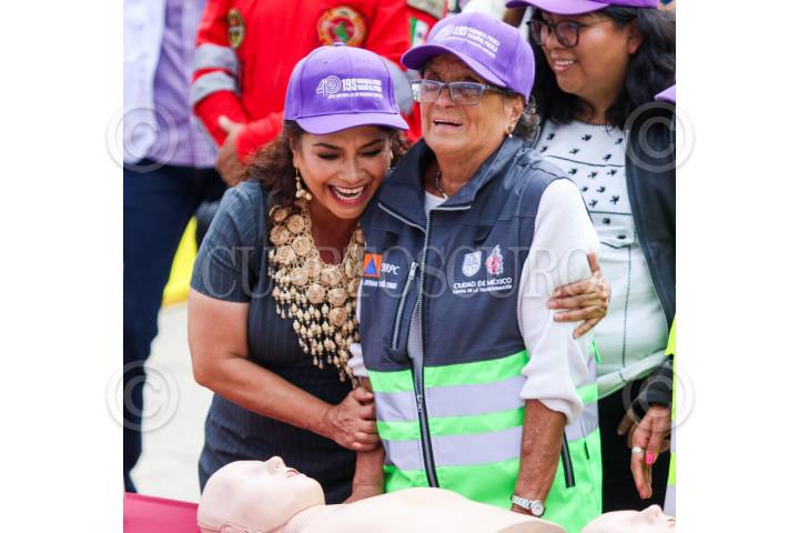 CIUDAD DE MÉXICO. 18SEPTIEMBRE2025.- La jefa de Gobierno de la Capital, Clara Brugada Molina, encabezó la magna clase de primeros auxilios, en conmemoración del 49 aniversario de los sismos. FOTO: VICTORIA VALTIERRA/CUARTOSCURO.COM
