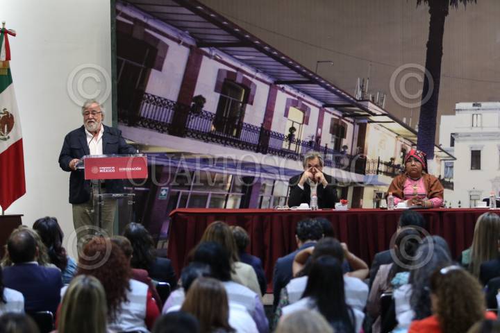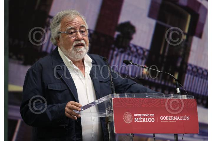 Alejandro Encinas Rodríguez, Subsecretario de Derechos Humanos, Población y Migración durante el primer informe de avances y resultados Reconstruyendo redes de CEAV de la SEGOB que se llevó a cabo en la misma.