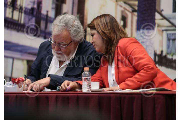 Alejandro Encinas Rodríguez, Subsecretario de Derechos Humanos, Población y Migración y María Fabiola Alanís Sámano, Comisionada Nacional para Prevenir y Erradicar la Violencia contra las Mujeres durante el primer informe de avances y resultados Reconstruyendo redes de CEAV de la SEGOB que se llevó a cabo en la misma.