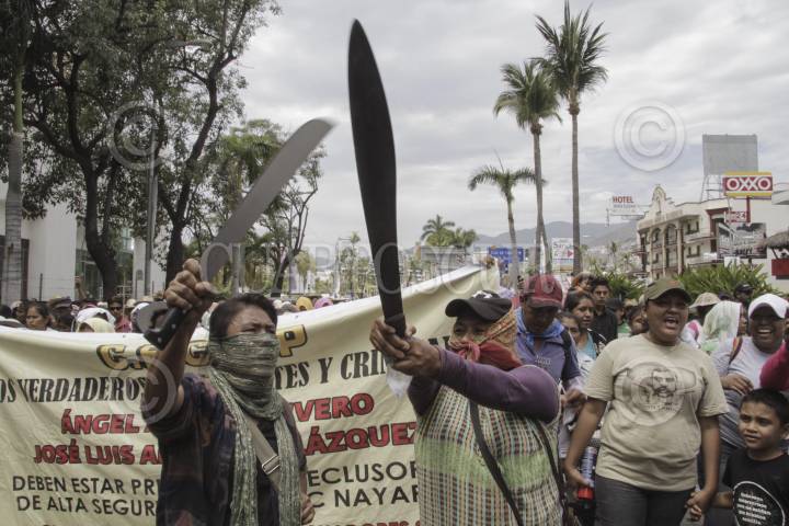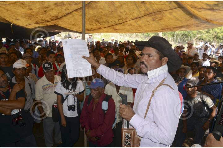 ACAPULCO, GUERRERO, 14DICIEMBRE2013.- Integrantes del Consejo de Ejidos y Comunidades Opositoras a la presa La Parota (Cecop), acompañados de diferentes organizaciones nacionales como Atenco, e internacionales; anunciaron que iniciarán los trabajos administrativos para independizarse de Acapulco y convertir a los Bienes Comunales de Cacahuatepec en un municipio libre y soberano. FOTO: BERNANDINO HERNÁNDEZ/ CUARTOSCURO.COM