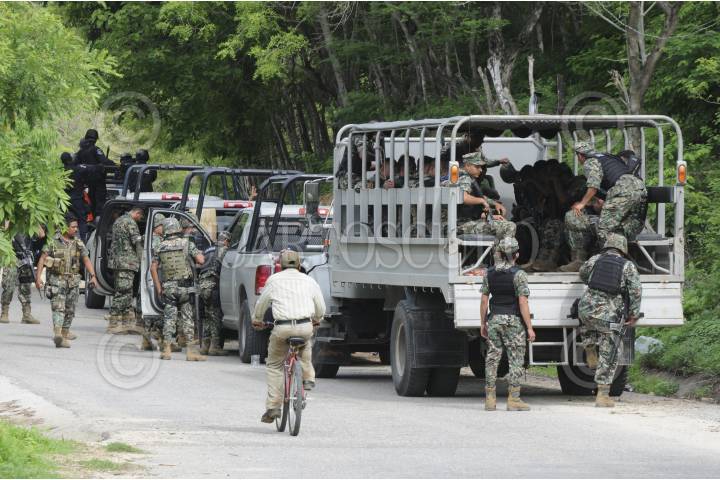 ACAPULCO, GUERRERO., 16NOVIEMBRE2014.- Durante la madrugada en un puesto de revisión, en la comunidad de La Concepción murieron 5 personas tras un enfrentamiento entre supuestos miembros de las gravilleras e integrantes de la Cecop, al lugar llegaron elementos del Ejercito y ministeriales quienes resguardaron el área y realizaron las indagatorias correspondientes. FOTO: BERNANDINO HERNÁNDEZ /CUARTOSCURO.COM
