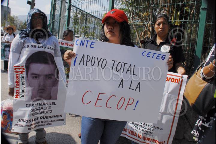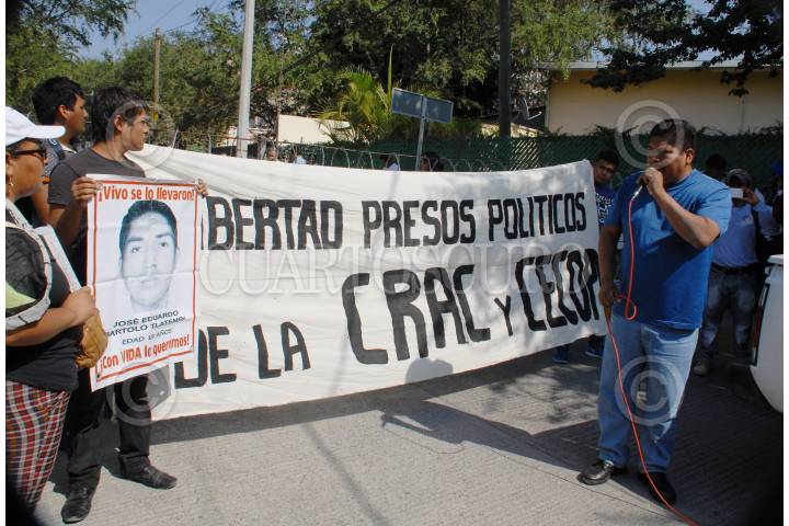 CHILPANCINGO, GUERRERO, 12ENERO2017.- Padres de familia de los 43 estudiantes desaparecidos en Iguala de la normal rural Raúl Isidro Burgos de Ayotzinapa, y representantes de la Coordinadora Estatal de Trabajadores de la Educación en Guerrero (CETEG) llevaron a cabo un mitin que fue encabezado por Felipe de la Cruz y Melitón Ortega vocero del comité de los padres de los 43. Los inconformes exigieron frente a la entrada principal de la Fiscalía liberen a los detenidos de la CRAC y CECOP. FOTO: JOSÉ I. HERNÁNDEZ / CUARTOSCURO.COM