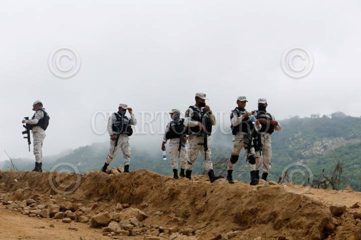 Elementos de la Guardia Nacional, Ejército Mexicano, y Policías Ministeriales continúan con la búsqueda del activista, Vicente Suastegui, en la parte alta de la montaña del poblado El Veladero.