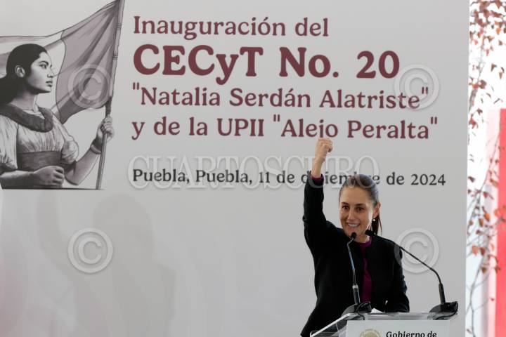 PUEBLA, PUEBLA, 11DICIEMBRE2024.- Claudia Sheinbaum, Presidenta de México; durante la inauguración del CECyt No. 20 “Natalia Serdán Alatriste” y de la UPII “Alejo Peralta”. FOTO: MIREYA NOVO/CUARTOSCURO.COM