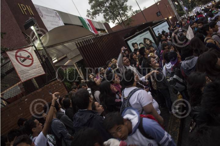 MEXICO, D.F., 26SEPTIEMBRE2014.-Alumnos de la Vocacional 13 del IPN se unieron a las protestas en contra de la entrada en vigor del nuevo reglamento interno y plan de estudios de esta institución educativa, no obstante el anuncio de que dicha entrada en vigor se postergaría debido a los manifiestaciones del día de ayer. A partir de las 7 horas se reunieron afuera del plantel con carteles en contra de Yoloxóchitl Bustamante, directora general del Politécnico, y en repudio a las modificaciones en el reglamento, que afirman endurece las sanciones académicas y rebaja el nivel académico y el perfil del egresado. En la imagen, los estudiantes no cesaban de corear porras y consignas en contra de Yoloxóchitl Bustamante y el nuevo reglamento. FOTO: DAVID POLO /CUARTOSCURO.COM