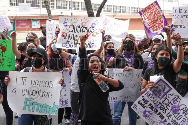 Familiares y amigos de Fernanda Jael Fernández Monroy se manifestaron afuera de la Fiscalía de la Ciudad de México en protesta por la desaparición de ella y de Valery Wianey Martínez López, alumna del Cecyt 14 y de su compañera Lucía Sarahí Cuevas Rojas