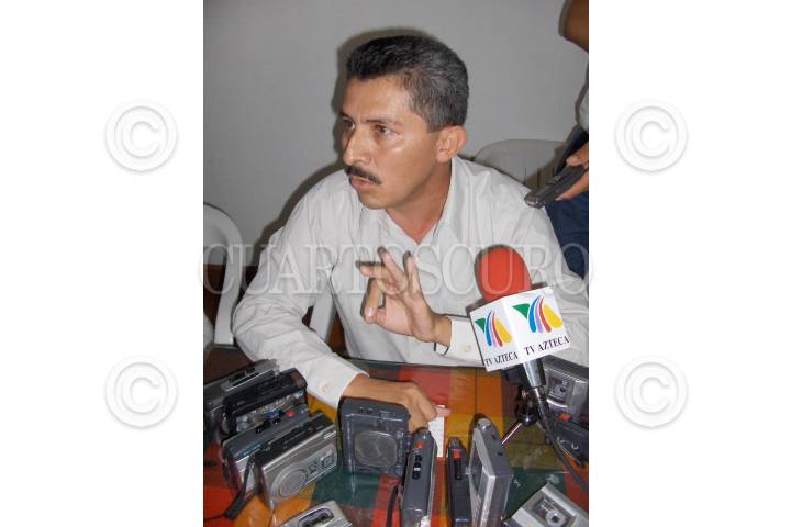 CHILPANCINGO,GUERRERO.-17NOVIEMBRE2005.- El ex consejero presidente del CEE Ceferino Cruz Lagunas, durante la conferencia de prensa que ofreciò en conocido restaurante, donde negò las acusaciones que se le hacen de estar involucrado en supuestos actos de corrupciòn, luego de la exhibiciòn de un video en un programa televisivo, donde se involucran a varios ex consejeros electorales. Foto: Oscar Alvarado/CUARTOSCURO.COM