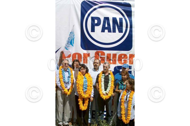 CHILPANCINGO, GUERRERO24OCTUBRE2004.- Porfiria Sandoval Arroyo (centro) tomó protesta como candidata oficial del PAN a la gubernatura del Estado previo a registrarse oficialmente ante el CEE. La acompañaron Florencio Salazar Adame titular de la Secretaria de la Reforma Agraria (SRA) y Alejandro Zapata Perogordo secretario de gobierno del CEN del PAN. FOTO: Oscar Alvarado/CUARTOSCURO.COM