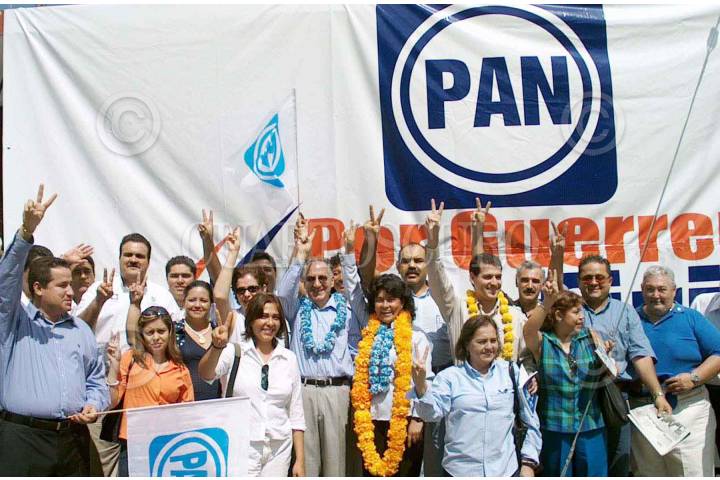 CHILPANCINGO, GUERRERO24OCTUBRE2004.- Panistas del estado se tomaron la foto del recuerdo con su candidata al gobierno del estado Porfiria Sandoval Arroyo. La acompañaron, el dirigente estatal del PAN Cornelio Garcia Villanueva, el titular de la SRA Florencio Salazar Adame, el secretario de accion de gobierno del CEN del PAN Alejandro Zapata Perogordo, el regidor del ayuntamiento de Acapulco Guido Renteria entre otros. FOTO: Oscar Alvarado/CUARTOSCURO.COM