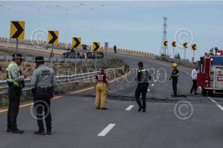 FRESNILLO, ZACATECAS, 20OCTUBRE2023.- Una pelea entre dos grupos rivales de internos se suscitó el medio día de este viernes en el interior de Centro Regional de Reinserción Social de Fresnillo (CERERESO), lo que provocó gran movilización de diferentes corporaciones de seguridad en el estado para controlar la situación en el interior. Minutos después del incidente en el penal, un trailer fue incendiado, para bloquear la carretera No. 45 a la entrada al municipio. Pero la rápida intervención, hizo que el bloqueo durara pocos minutos. Fuentes extraoficiales informaron que cuatro internos sufrieron heridas de armas blanca y fueron trasladados a un hospital. Autoridades informaron qué además, se identifico a los lideres de los grupos participantes y estos fueron trasladados al penal de Cieneguitas, en la capital zacatecana. FOTO: ADOLFO VLADIMIR /CUARTOSCURO.COM
