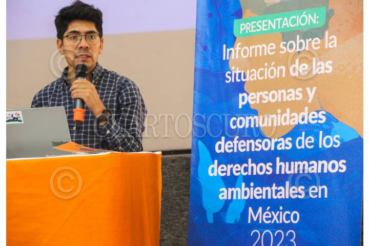 CIUDAD DE MÉXICO. 16ABRIL2024.- El Centro Mexicano de Derecho Ambiental, en una conferencia de prensa en el centro de derechos humanos Agustín Pro Juárez; rindieron su informe sobre agresiones a activistas. Gustavo Alanís y Felipe Romero encabezaron el informe que arroja que el 2023 ha sido el segundo año más violento para defensores ambientalistas. FOTO: VICTORIA VALTIERRA/CUARTOSCURO.COM