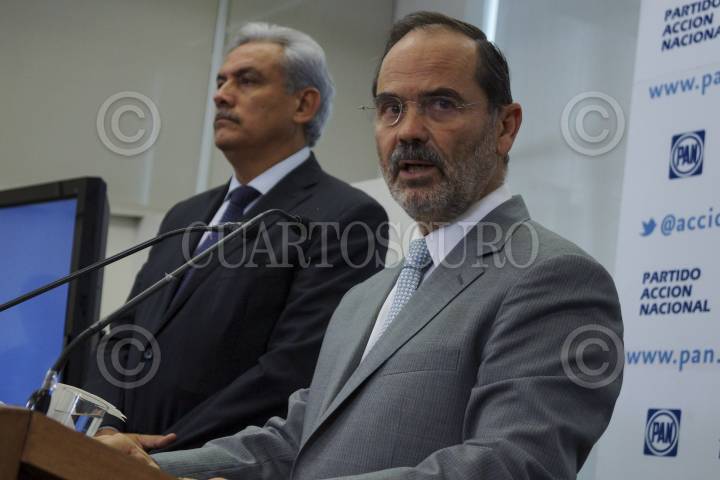 MÉXICO, D.F., 11SEPTIEMBRE2012.- Alberto Cárdenas, ex candidato a la alcaldía de Guadalajara; y Gustavo Madero, Presidente del PAN; durante la conferencia de prensa, en la que anunciaron que acudirán a la sala regional del Tribunal Electoral del Poder Judicial de la Federación para pedir la anulación de los comicios municipales, por las diferentes irrugularidades presentadas en la elección municipal. Además, Madero expuso que ve con atención la decisión de Andrés Manuel López Obrador de separarse de los partidos que integraron la coalición Movimiento Progresista y comentó sobre los señalamientos del Presidente Calderón, que él debería decir quienes son los panista que le plantearon utilizar recursos públicos para las elecciones del pasado 01 de julio. FOTO: ADOLFO VLADIMIR /CUARTOSCURO.COM