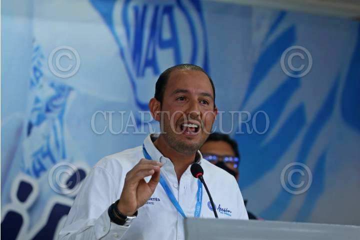 El Presidente Nacional del CEN del PAN Marko Cortés, durante una conferencia de prensa en el Consejo Estatal del Pan.