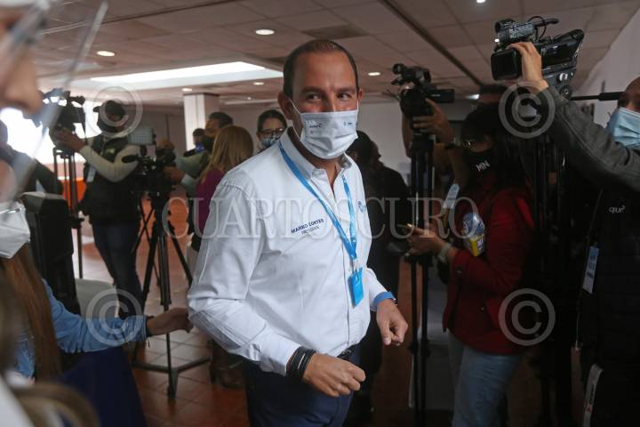 El Presidente Nacional del CEN del PAN Marko Cortés, después de la conferencia de prensa que ofreció en el Consejo Estatal del Pan.
