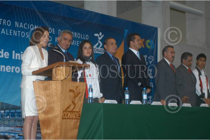 MÉXICO, D.F., 08ENERO2007.- La secretaria de Educación Pública, Josefina Vázquez Mota, inauguró el ciclo escolar en el Centro Nacional de Desarrollo de Talentos y Alto Rendimiento. En el acto estuvieron presentes Carlos Hermosillo, titular de Conade, y Felipe Muñoz, presidente del COM. FOTO: FERNANDO GARCÍA/CUARTOSCURO.COM